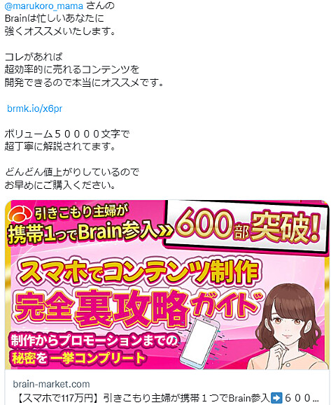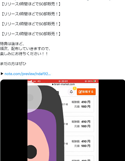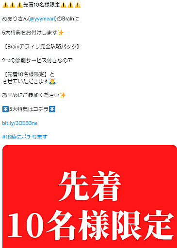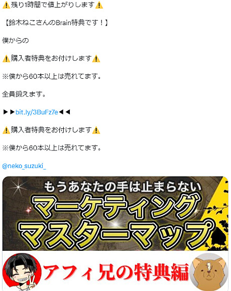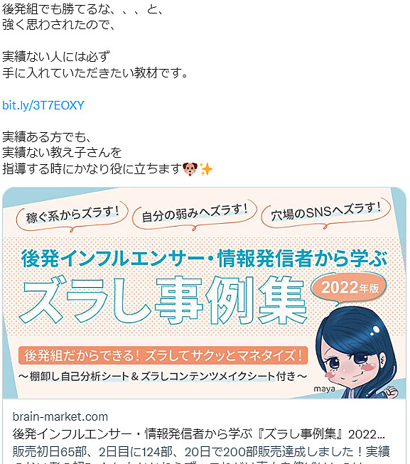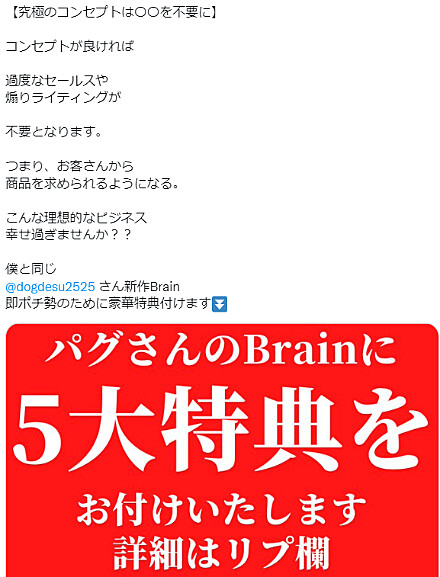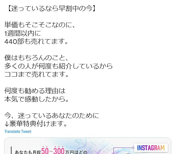 d.特典の内容はリプ欄で伝えることで、ツイートの文字数制限140文字ギリギリで教材の魅力を最大限に伝えることができたから