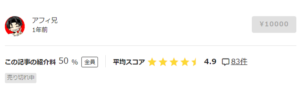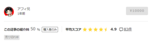 この記事では紹介料50%と書いてあるため、自身の紹介リンク経由で購入されると、販売価格の50%の報酬が発生します。この記事だと、10,000円なので、あなたに5,000円という報酬が発生します。そして、この報酬料は販売者が自由に変更できます。なので、紹介料が0%の場合は、紹介に成功してもあなたには報酬が一切発生しません。なので、この紹介料がいくらなのかは紹介する前に確認しておきましょう。ちなみに、紹介報酬は0, 10, 20, 30, 40, 50%のいずれかで設定されております。